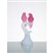 Scultura di due volatili su ramo in vetro rosato e bianco opale.