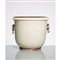 Un cachepot in ceramica smaltata avorio e maniglie laterali in metallo, bocca piana circolare. Lievi cadute di colore sulla base e sul bordo. Sul fondo sigla Z D 3109/2.