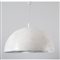 Grande lampada a sospensione ad una luce, diffusore semisferico in resina verniciata nei toni del bianco.