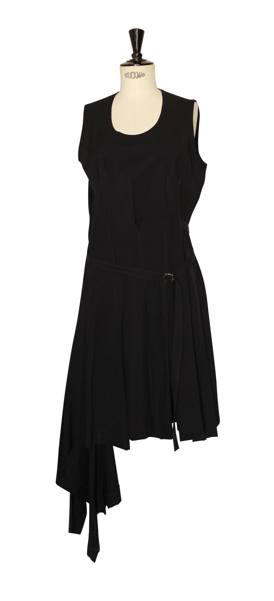 Abito blu in viscosa con cintura e gonna a faldoni asimmetrici. Made in Japan. Taglia 44. Perfettamente conservato.
