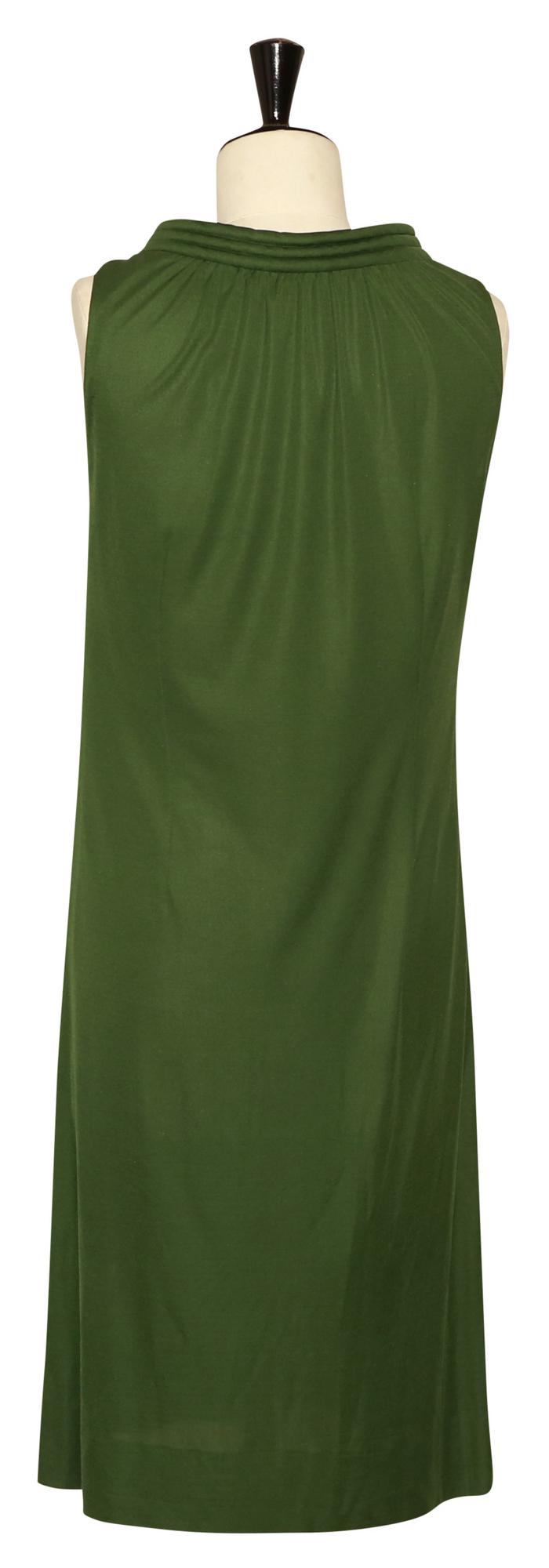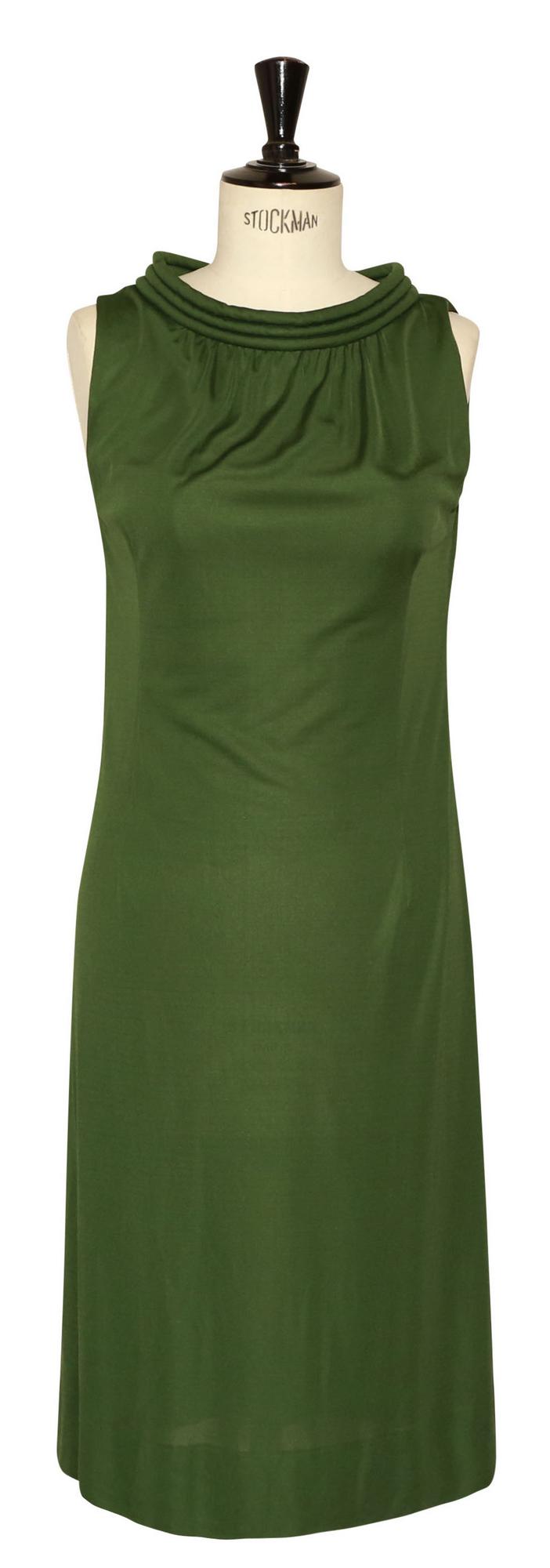 Raro abito in tinta unita in jersey di seta di colore verde. Prodotto negli anni '60 a Firenze. Taglia Uk 12. Made in Italy. Perfettamente conservato.