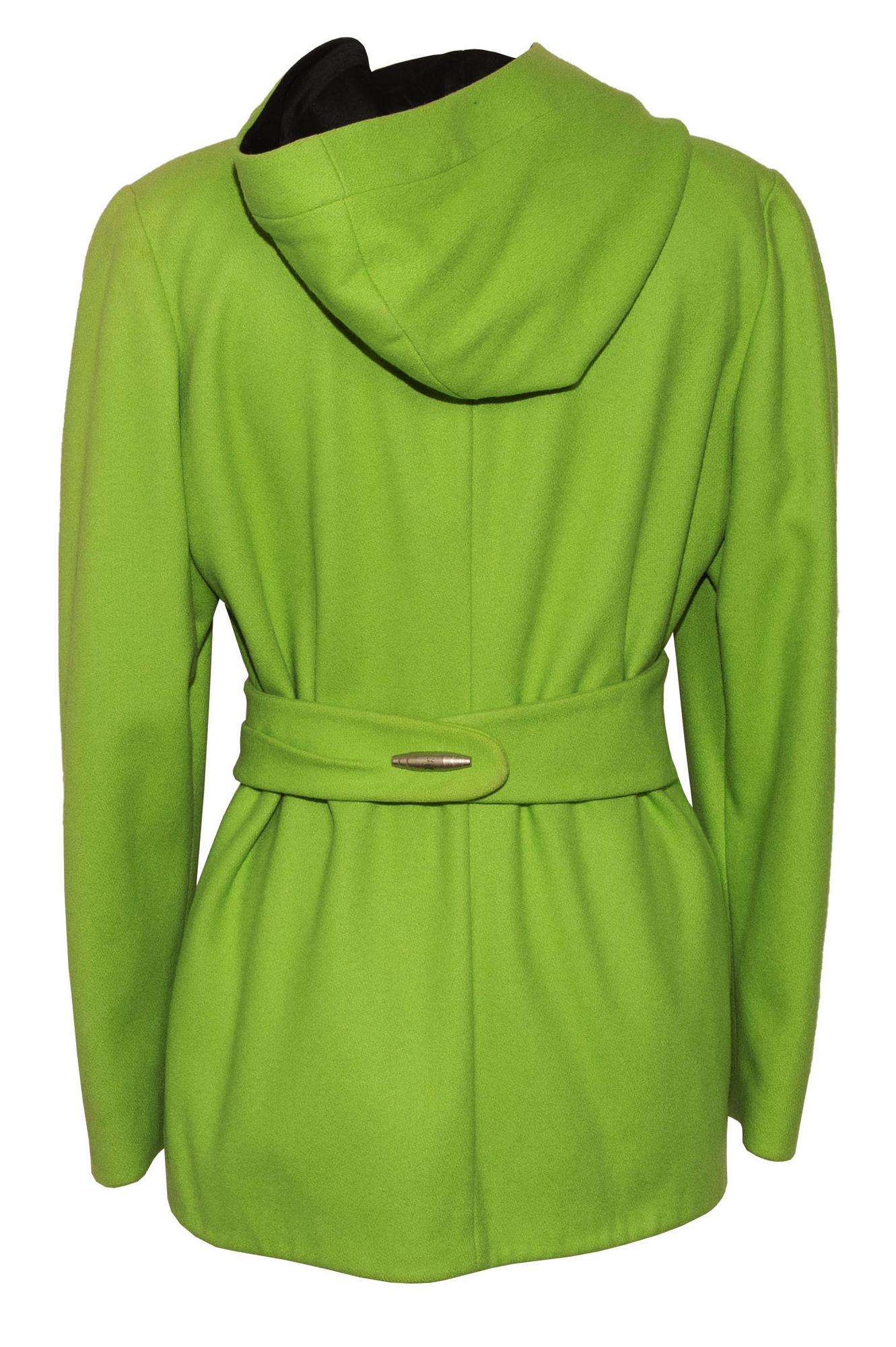 Giacca etichettata come Thierry Mugler Active, in tessuto verde elettrico. Chiusa con bottoni in metallo. Dotato di cappuccio, che gli conferisce uno stile street. Prodotto in Italia alla fine degli anni '80 taglia 40. Perfettamente conservata.