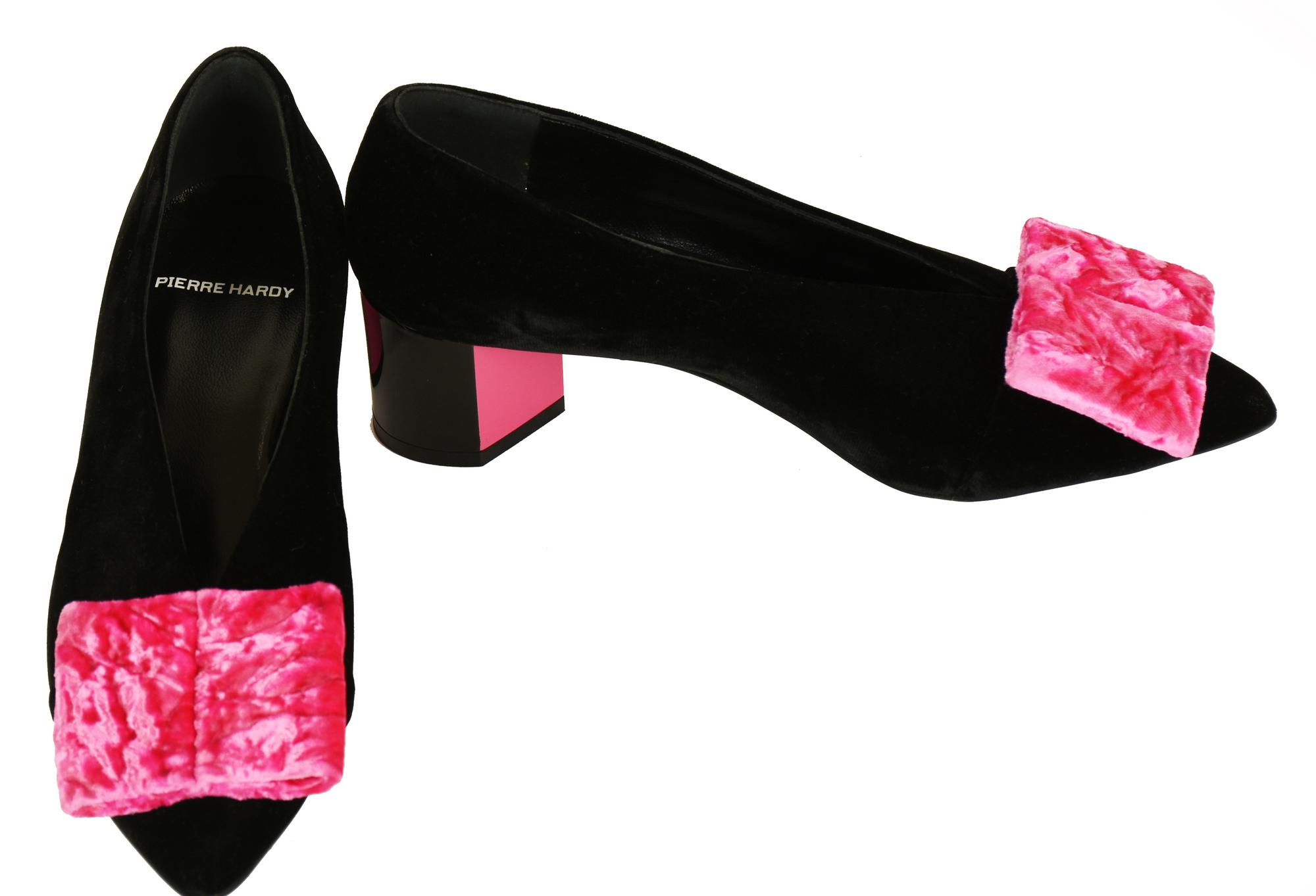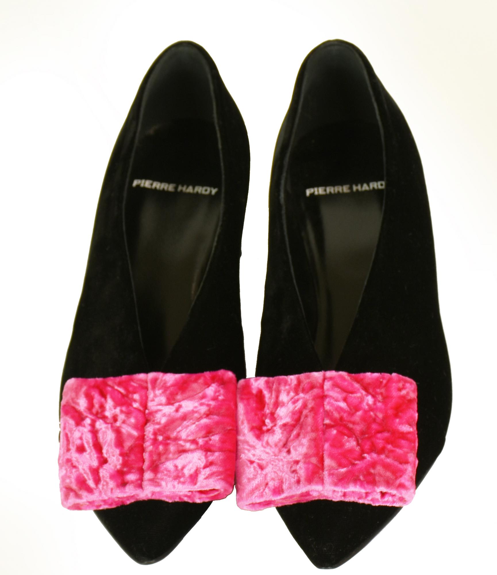 Pierre Hardy PUMPS Description: Pointed black velvet pumps with pink bows,...