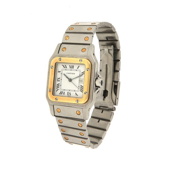 CARTIER Orologio modello "Santos", anni '90 30x30 Cassa in tre parti in...