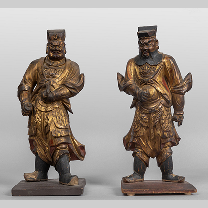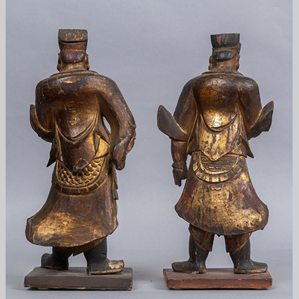 Coppia di guerrieri in legno scolpito e dorato Cina sec.XIX