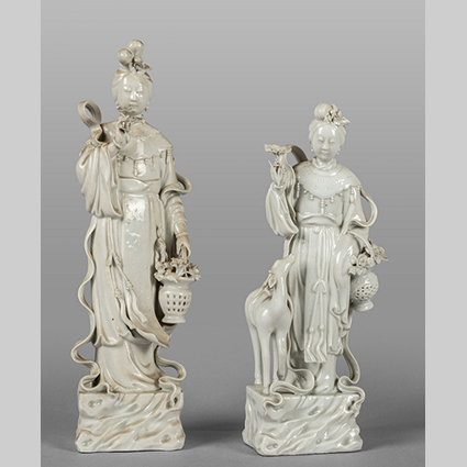 Due guanin in porcellana bianca Cina sec.XX