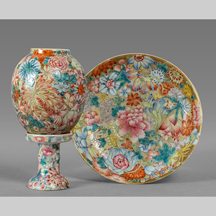 Piatto e lanterna in porcellana decoro mille fiori Cina sec.XX