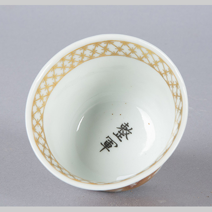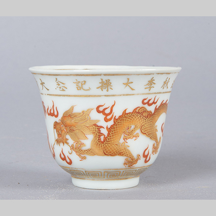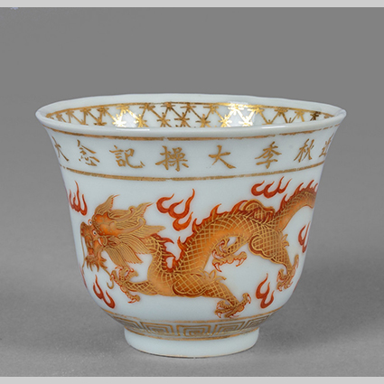 Tazza in porcellana policroma decorata con dragone in rosso e oro Cina sec.XIX