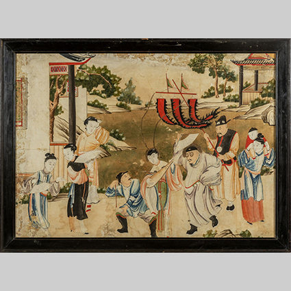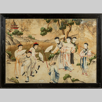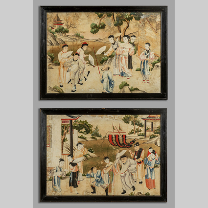 'Scene di vita cinese' coppia di pannelli su carta intelata Cina sec.XVIII