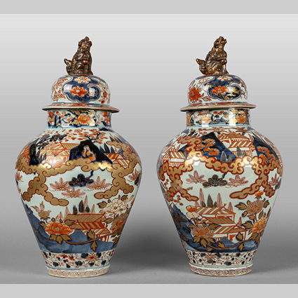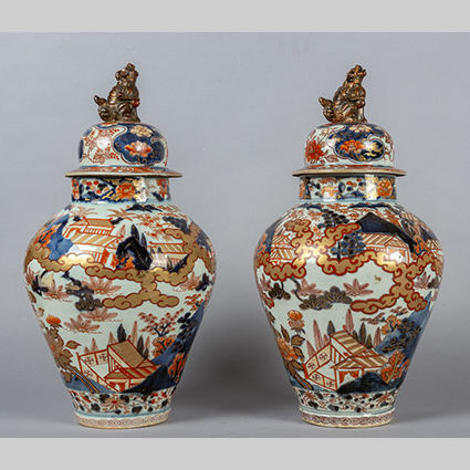Coppia di potiches in porcellana Imari decorate in policromia ed oro sec.XIX