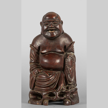 Scultura in legno duro raffigurante Budda Cina inizi sec.XX (h.cm.38)