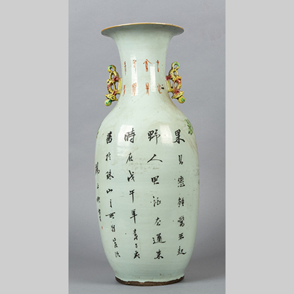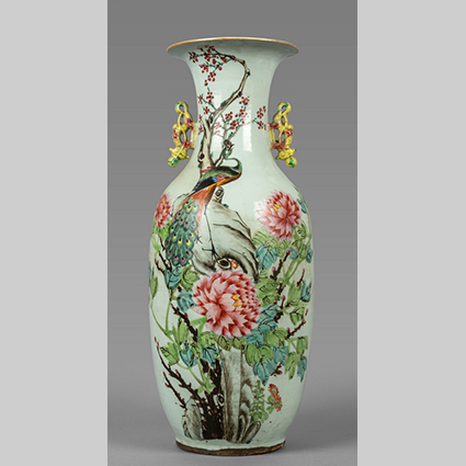 Vaso in porcellana decorato in policromia con peonie e uccellino del paradiso Cina fine sec.XIX