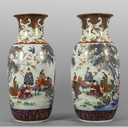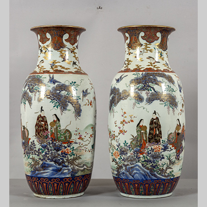 Coppia di grandi vasi in porcellana policroma Giappone sec.XIX