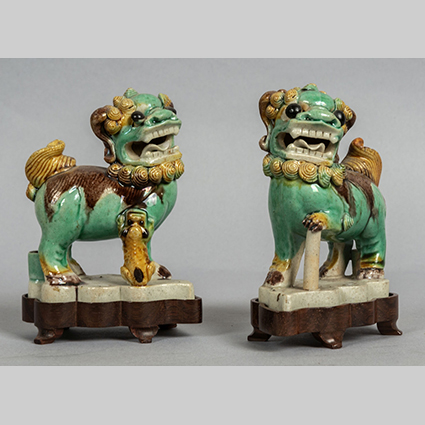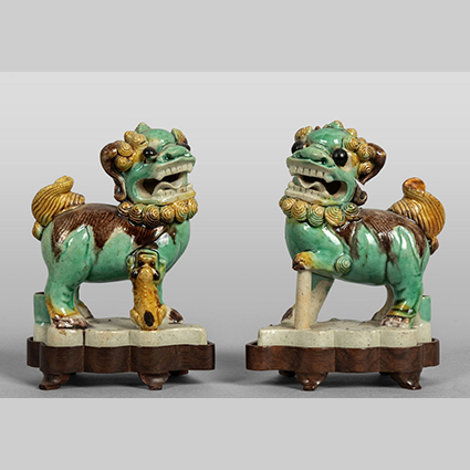 Coppia di cani di Pho in gres invetriato decoro sancai Cina sec.XVIII