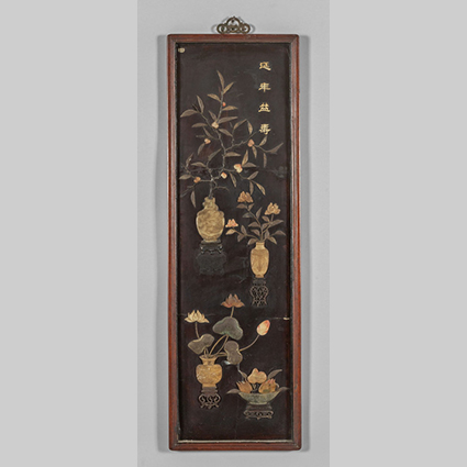 Pannello in pietre dure raffigurante vaso di fiori Cina sec.XIX