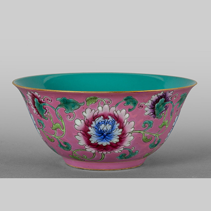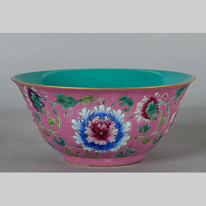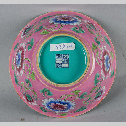 Bowl in porcellana a fondo rosa marcata alla base Cina sec.XX