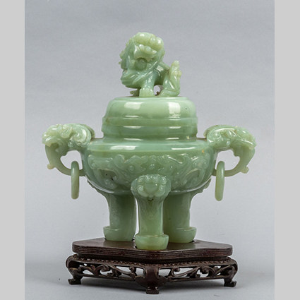 Previous Lot 0521 Next Aste Boetto - Via Mura dello Zerbino 10R, 16122 Genova ASTA DI ANTIQUARIATO E ARTE ORIENTALE Asta di Antiquariato e Arte Orientale Tuesday 26 September 2023 hours 10:00 (UTC +01:00) OGGETTISTICA Vaso con coperchio in giada verde Cina sec.XXh.cm.23