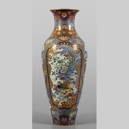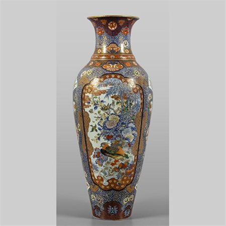 Grande vaso in porcellana decorato in policromia ed oro inizi sec.XIX