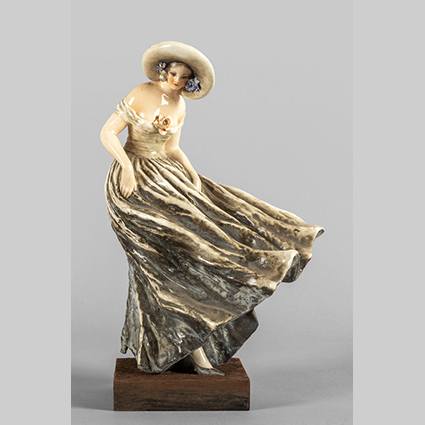 Ragazza al vento gruppo in ceramica f.to Cacciapuoti