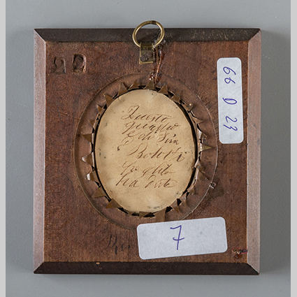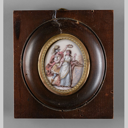 Due personaggi in abiti classici miniatura su porcellana sec.XIX