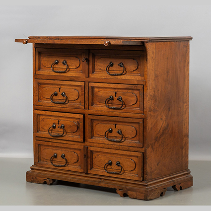 Piccolo cassettone Luigi XIV in noce a sei cassetti con scrittoio apribile Lombardia sec.XVIII