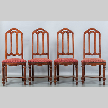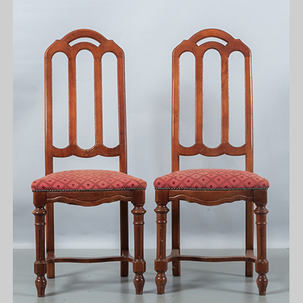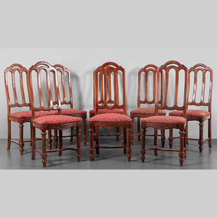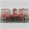 Otto sedie con schienale alto a stecche seduta imbottita con stoffa rossa