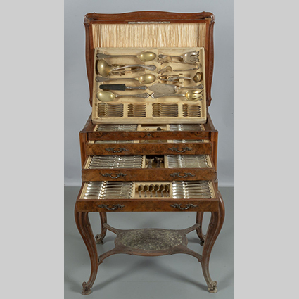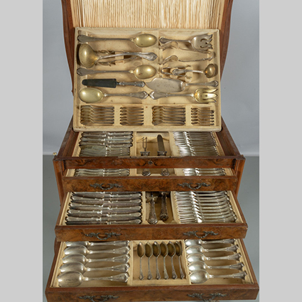 Servizio di posate in argento 925 nel suo mobile composto da: