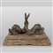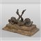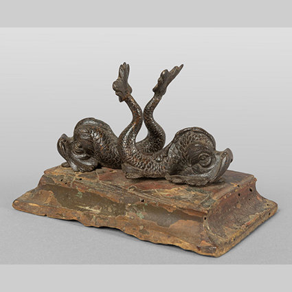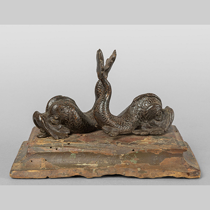 Delfini due piccole sculture in bronzo montate su base in legno laccato a finto marmo Padova sec.XVI