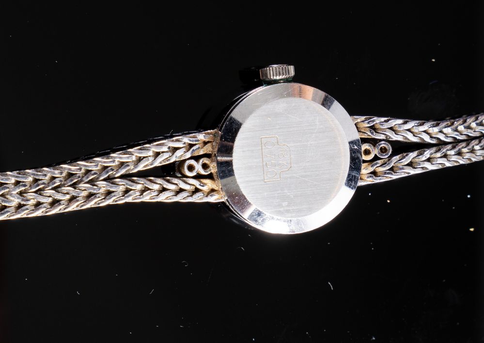 Peso complessivo 19,7 grammi. 18K White gold wristwatch.