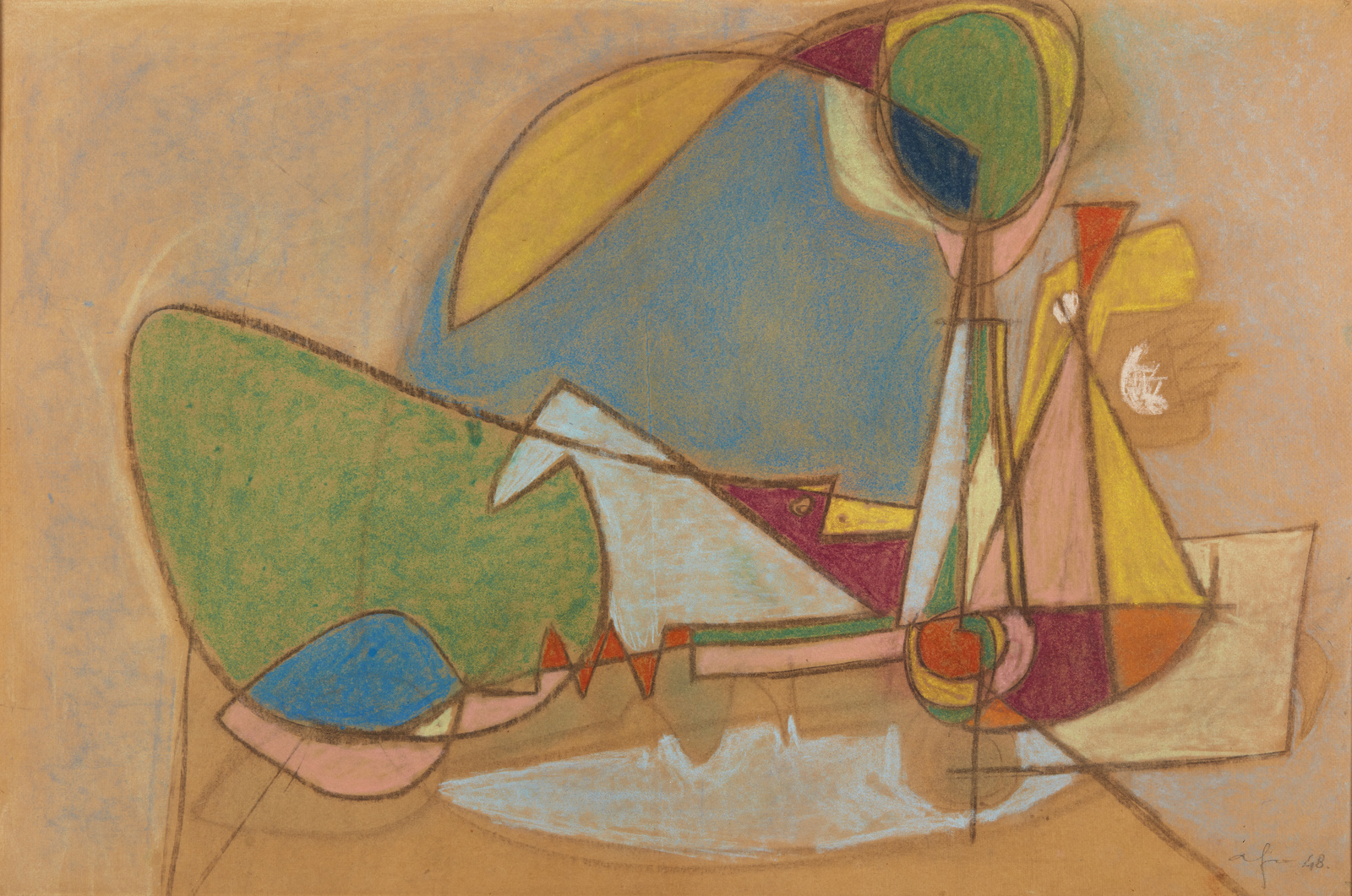 BASALDELLA AFRO (1912 - 1976) Senza titolo. 1948. Tecnica mista su carta intelata. Cm 75,00 x 50,00. Firma e anno in basso a destra. Opera archiviata presso l'Archivio Afro, Roma, come da documentazione fotografica allegata all'opera riportante il relativo numero d'inventario. Lievi difetti. Cornice presente