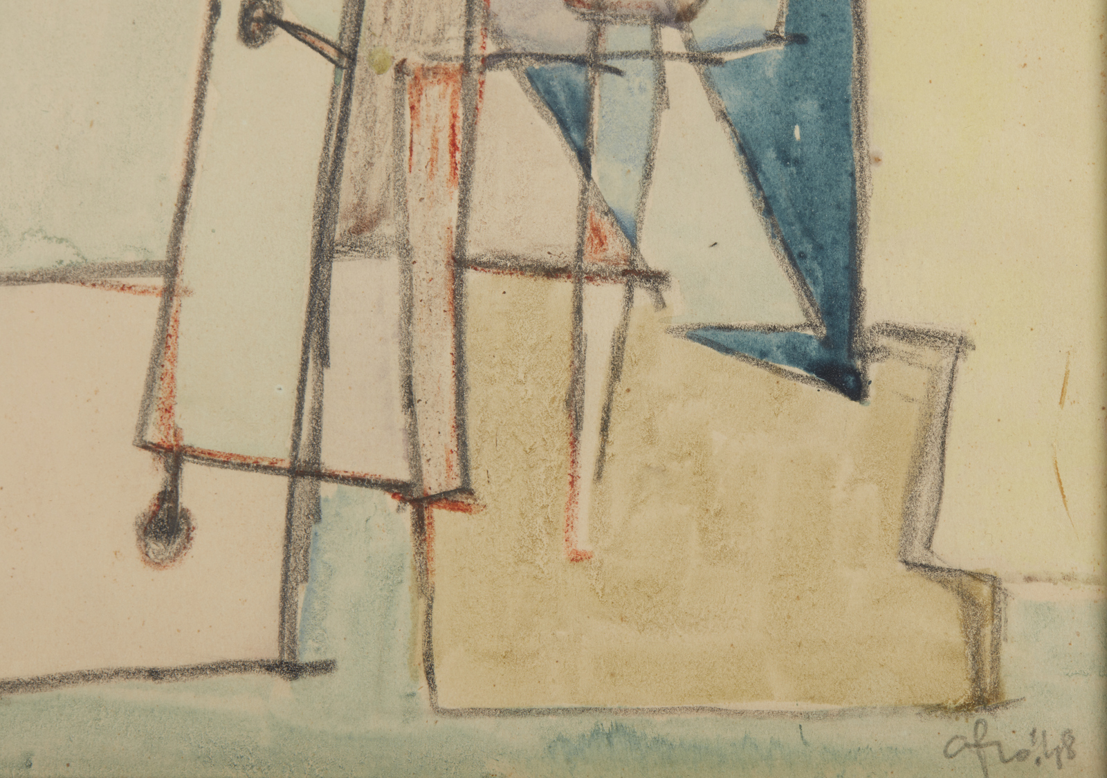 BASALDELLA AFRO (1912 - 1976) Senza titolo. 1948. Tecnica mista su carta. Cm 32,30 x 24,00. Firma e anno in basso a destra. Opera archiviata presso l'Archivio Afro, Roma, come da documentazione fotografica allegata all'opera riportante il relativo numero di inventario. Provenienza: Galleria Poleschi, Milano; Galleria Spirale, Milano; Collezione Privata, Padova. Lievi difetti. Cornice presente