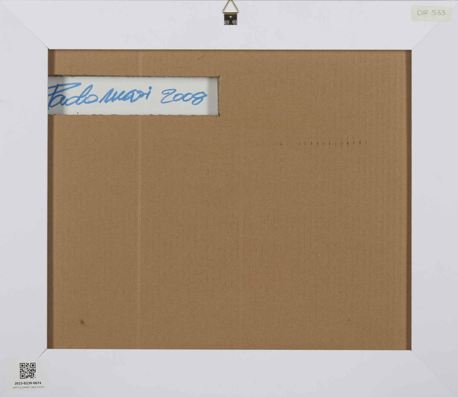 MASI PAOLO (n. 1933) Senza titolo. 2008. Tecnica mista su cartone. Cm 56,00 x 49,00. Al retro firma e anno. Autentica dell'artista su fotografia. Entro teca in plexiglass.