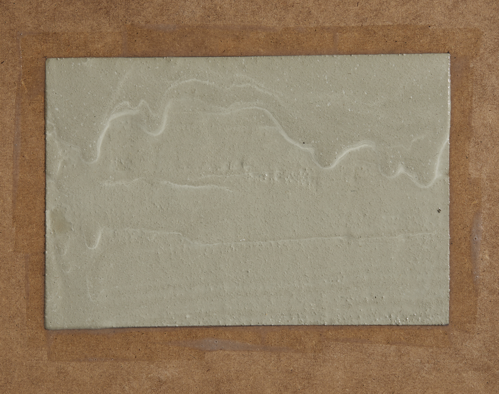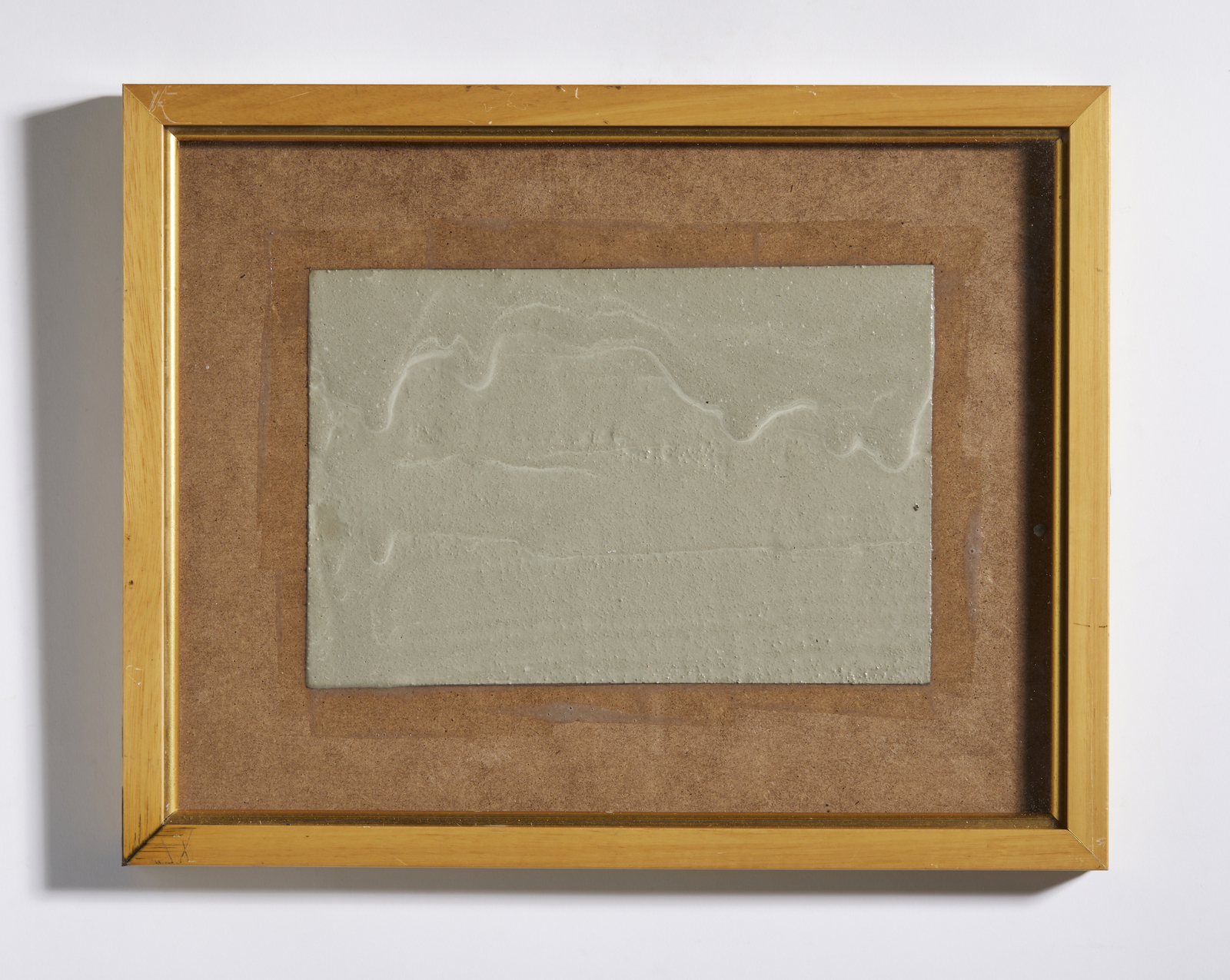 CACCIOLA ENZO (n. 1945) Senza titolo. 1977. cemento su tavola. Cm 44,00 x 34,00. Al retro firma, anno e timbro dell'artista. Autentica dell'artista su fotografia. Opera realizzata in occasione della 6° edizione di Documenta a Kassel. Provenienza: Collezione privata, Pavia. Cornice presente