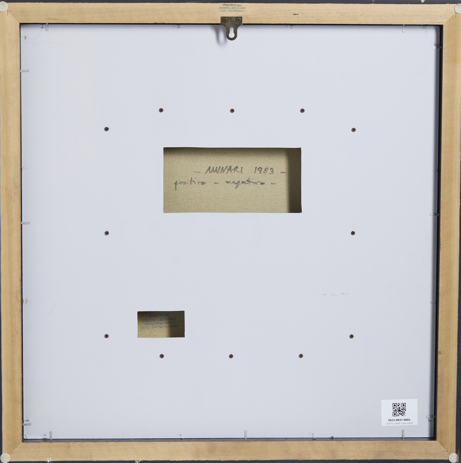 MUNARI BRUNO (1907 - 1998) Positivo-negativo. 1983. Acrilico su tela. Cm 40,00 x 40,00. Al retro titolo, firma, anno e timbro Sincron Centro Culturale, Brescia. Autentica dell'artista su fotografia con timbro Sincron Centro Culturale, Brescia. Cornice presente