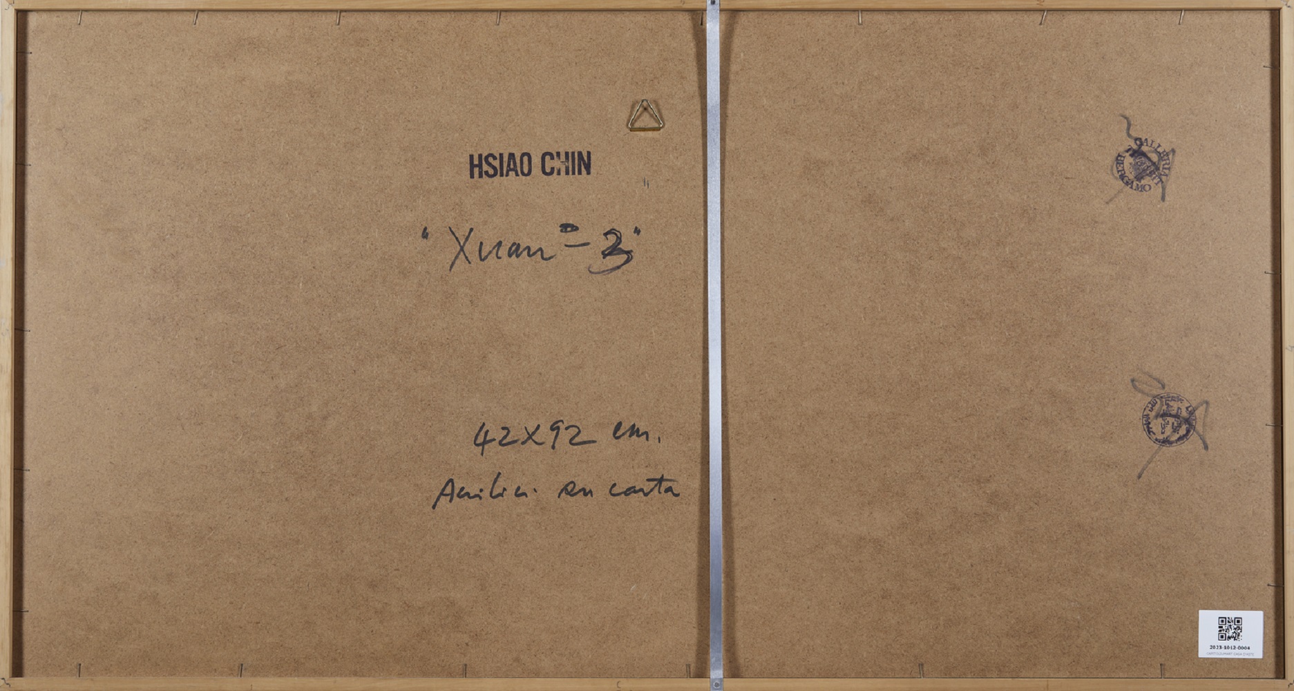 CHIN HSIAO (1935 - 2023) Xuan III. Acrilico su carta. Cm 92,00 x 42,00. Firma in basso a destra. Al retro titolo, firma e timbro Galleria Transit, Bergamo. Provenienza: Collezione privata, Milano. Cornice presente