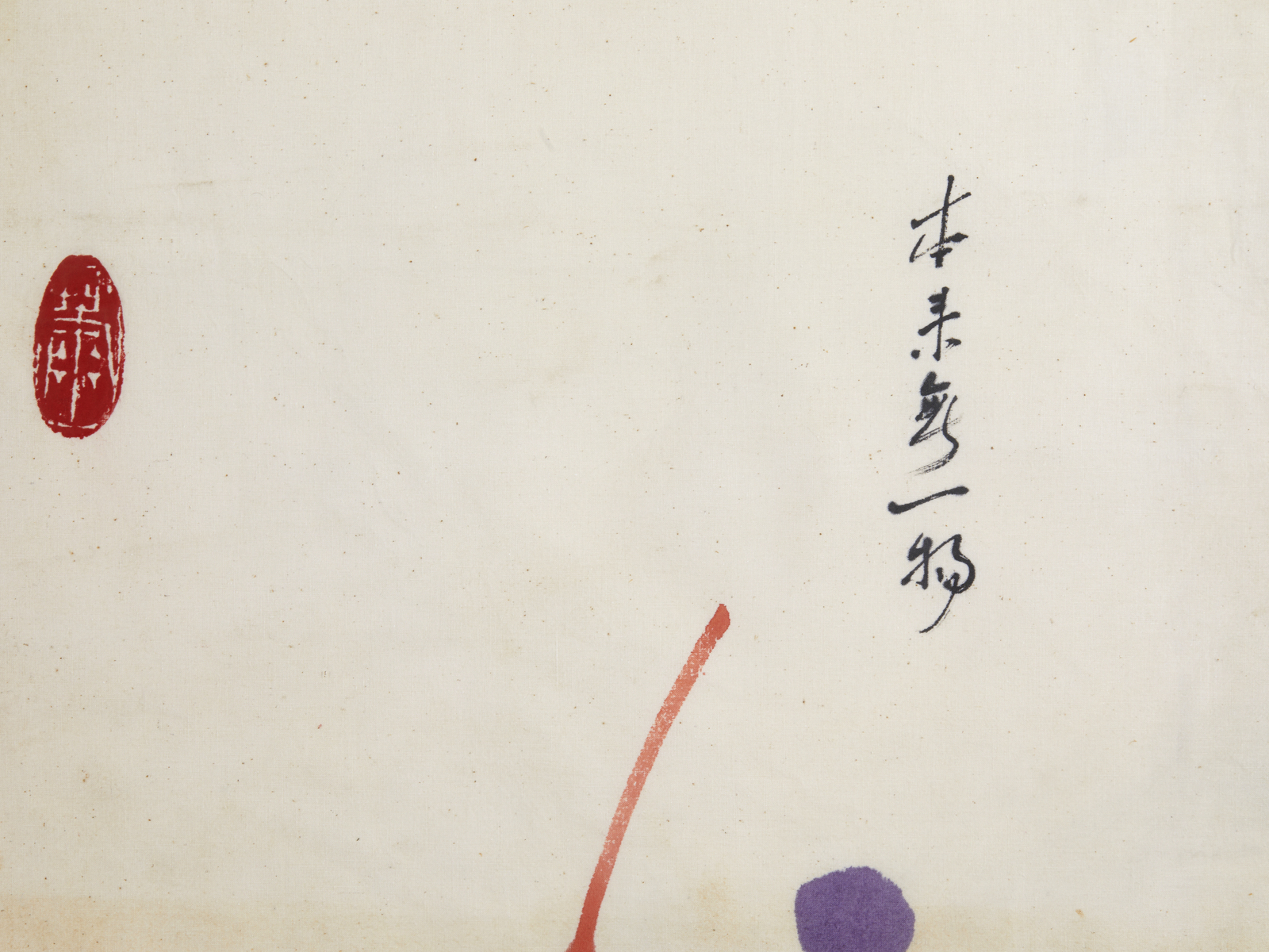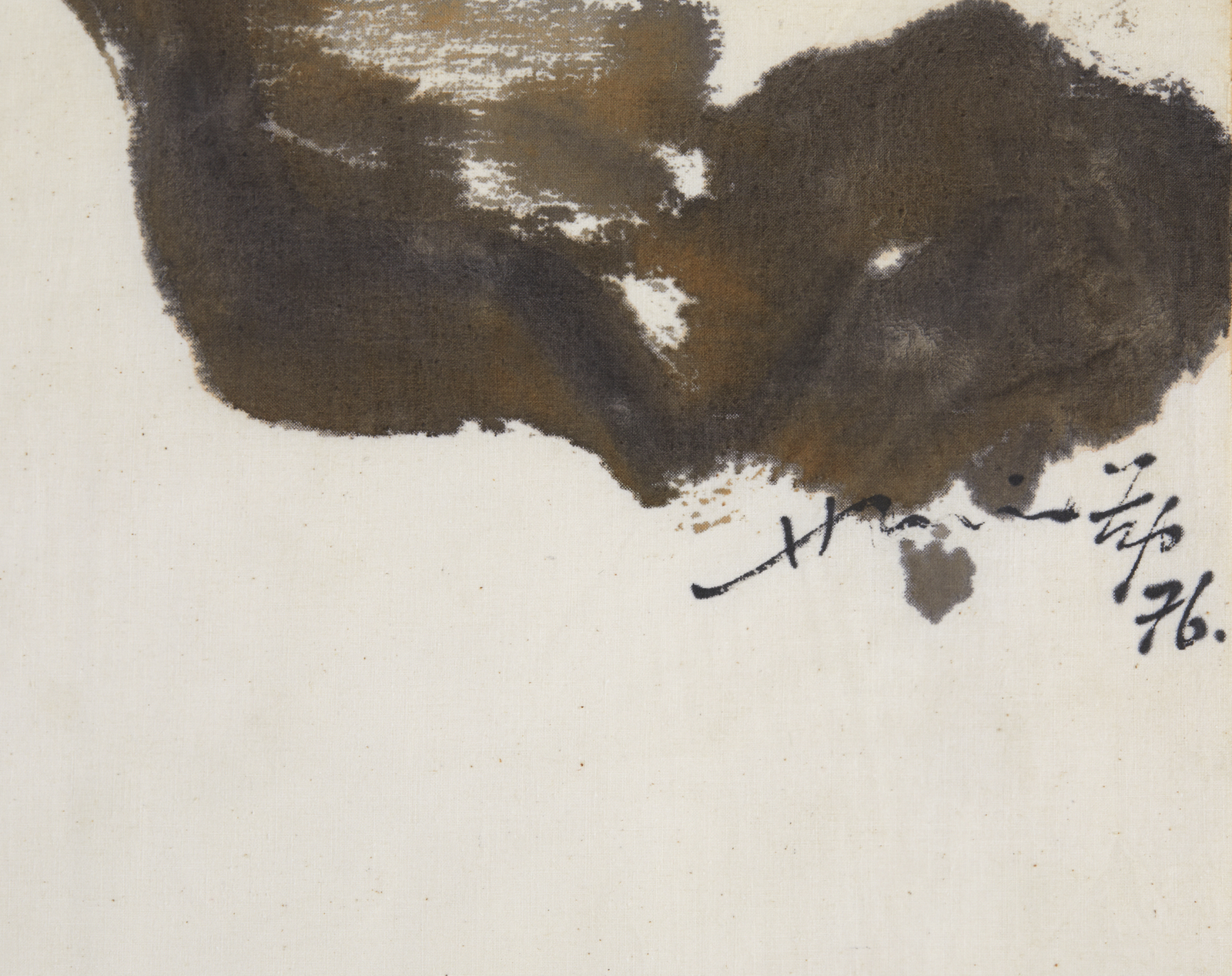 CHIN HSIAO (1935 - 2023) In origine: non c'erano nulla. 1976. Inchiostro su tela. Cm 50,00 x 85,00. Firma e anno in alto a destra. Al retro titolo, anno e firma a timbro. Lievi difetti. Cornice presente