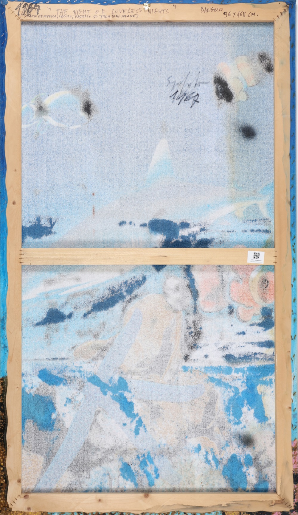 DANGELO SERGIO (1932 - 2022) The night of loveless nights. 1967. Tecnica mista su tela. Cm 97,00 x 168,00. Al retro titolo, firma e anno.