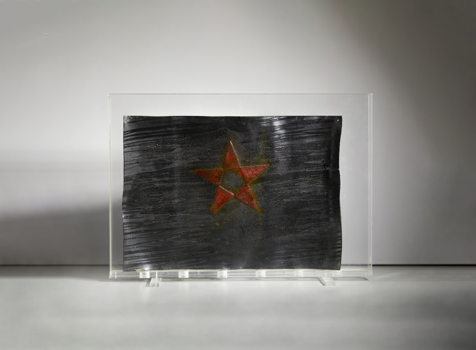 ZORIO GILBERTO (n. 1944) Stella. 2001. Vernice, acrilico e sabbia su cuoio. Cm 110,00 x 80,00. Firma e anno al retro. Bibliografia: Gilberto Zorio, M. Tirelli cit. in D. Eccher, Bergamo 2001, p.141.