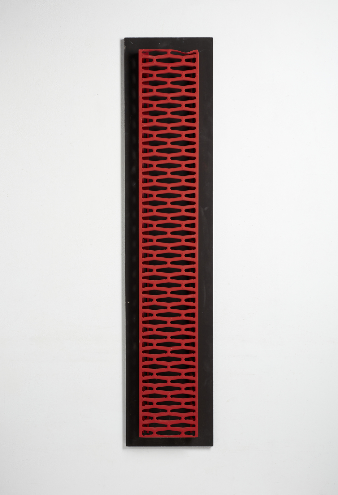 AUBERTIN BERNARD (1934 - 2015) Monochrome Rouge. 1990. Ferro smaltato. Cm 30,00 x 140,00. Al retro titolo, firma e anno. Opera in corso di archiviazione presso l'Archivio Bernard Aubertin, Brescia.