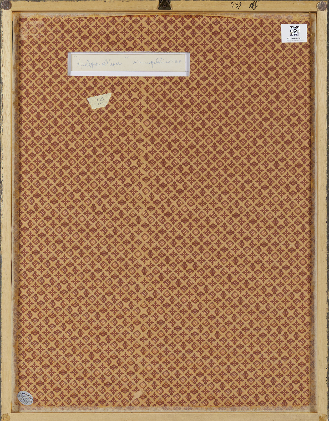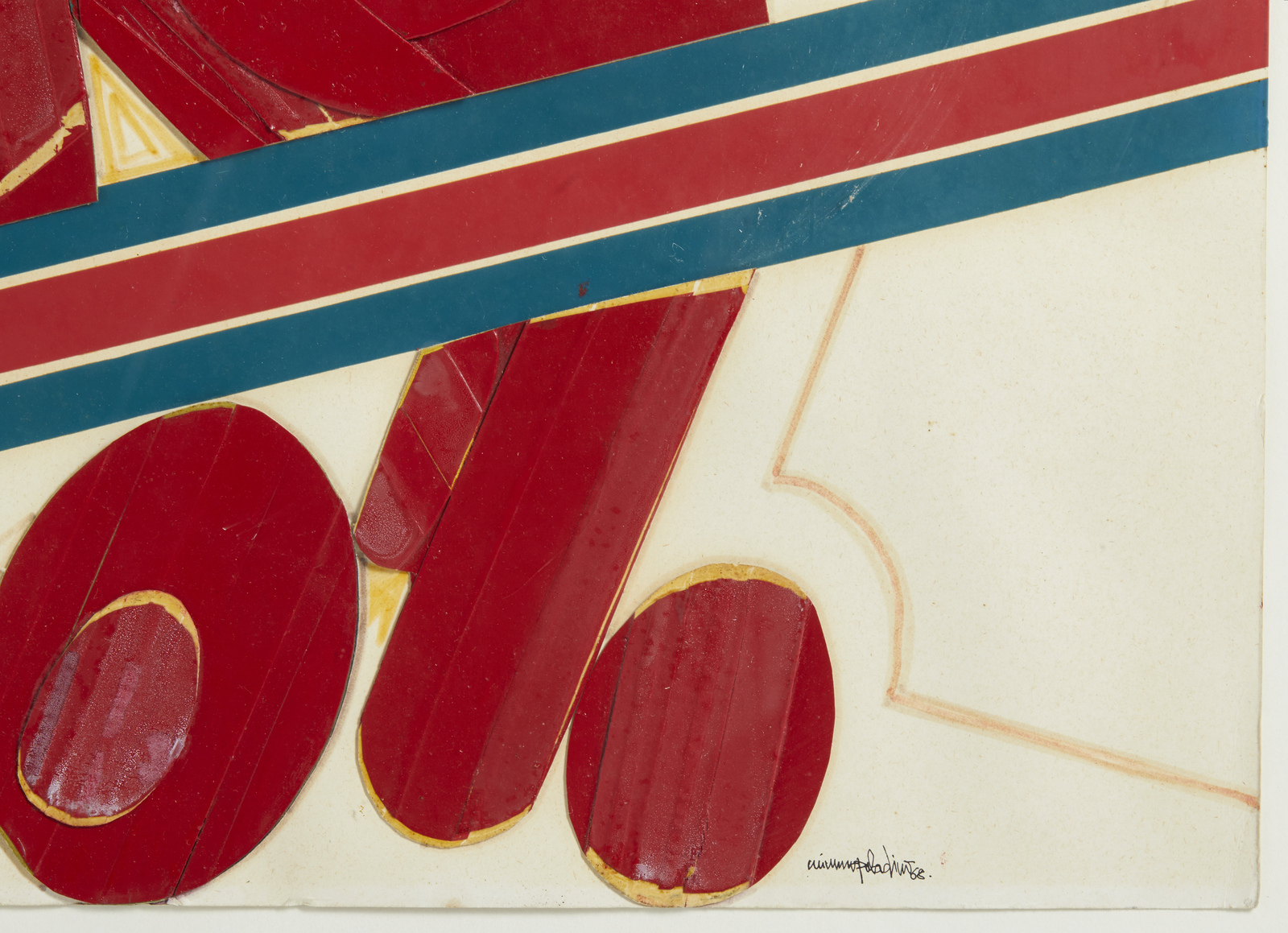 PALADINO MIMMO (n. 1948) Apologia all'uovo. 1968. Tecnica mista e collage su cartoncino. Cm 49,50 x 69,50. Firma e anno in basso a destra. Al retro titolo, firma e anno. Autentica dell'artista su fotografia con relativo numero di archviazione. Cornice presente
