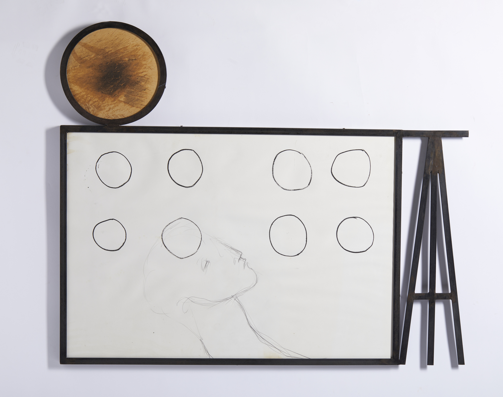 PALADINO MIMMO (n. 1948) AT. 1987.Scultura in ferro battuto e tecnica mista su carta e legno. Cm 121,00 x 102,00. Autentica dell'artista su fotografia. Esposizioni: Mimmo Paladino, Galleria In Arco, 1988 (ill.).