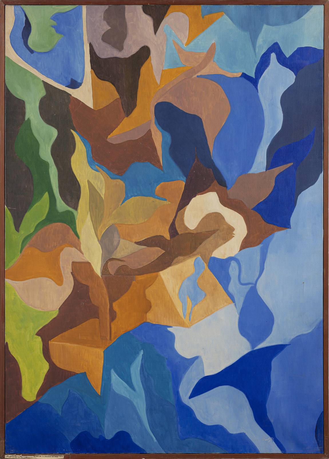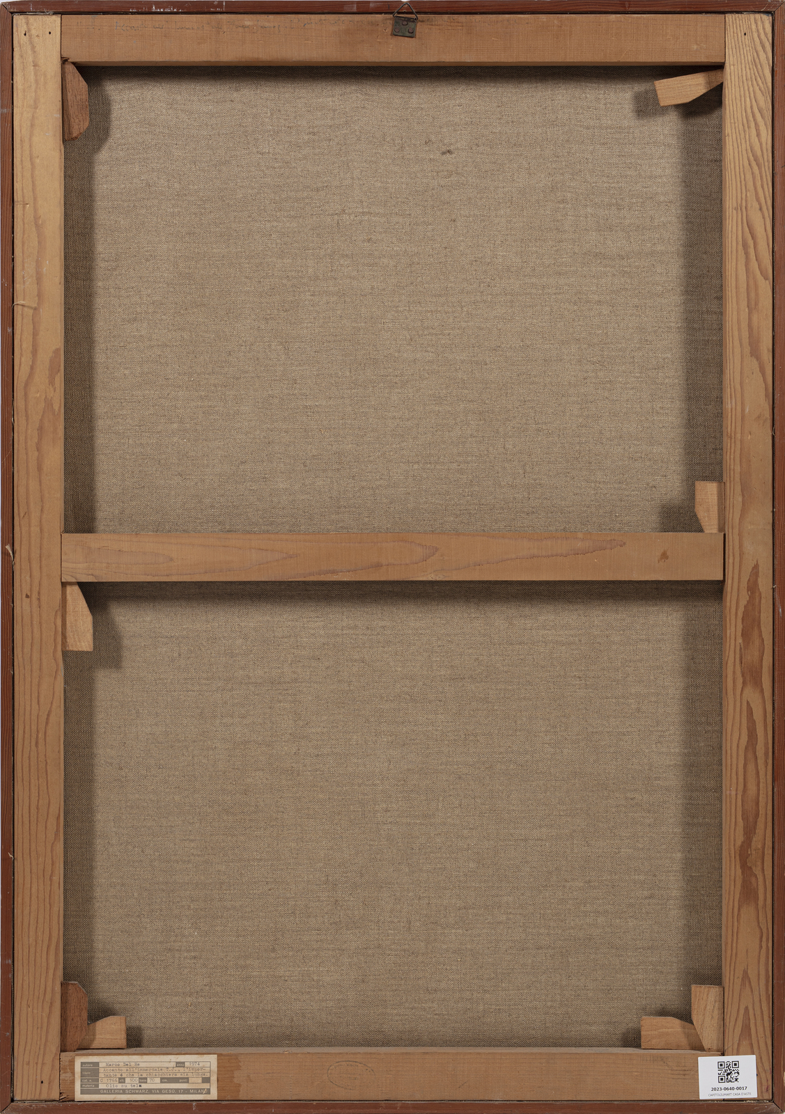 DEL RE MARCO (n. 1950) Accanto all'immobile T.J. l'importante è che la chiacchiera sia lunga. . 1974. Olio su tela . Cm 70,00 x 100,00. Firma in basso a destra. Al retro titolo, firma e cartiglio descrittivo Galleria Schwarz, Milano. Lievi difetti. Cornice presente