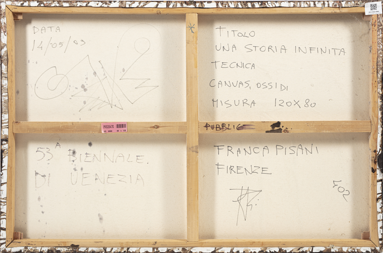 PISANI FRANCA (n. 1956) Una storia infinita. 2009. Tecnica mista su tela. Cm 120,00 x 80,00. Al retro titolo, firma e anno. Autentica dell'artista su fotografia. Esposizioni: 53a Biennale di Venezia, “Fare Mondi”, Padiglione della Repubblica Araba Siriana. Pubblicazioni: F.P.-53a Biennale di Venezia, 2009, p. 152. Lievi difetti.
