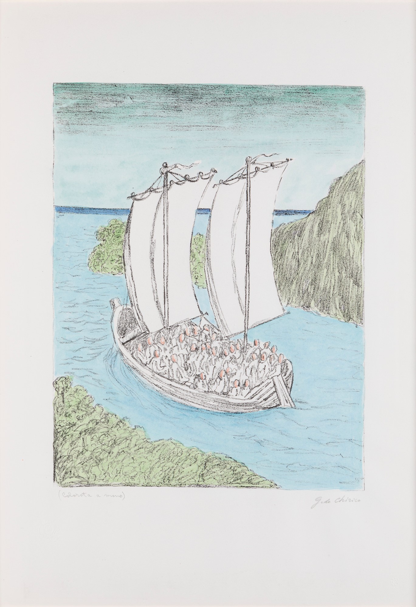Giorgio de Chirico (Volos 1888-Roma 1978) - La barca misteriosa, 1973