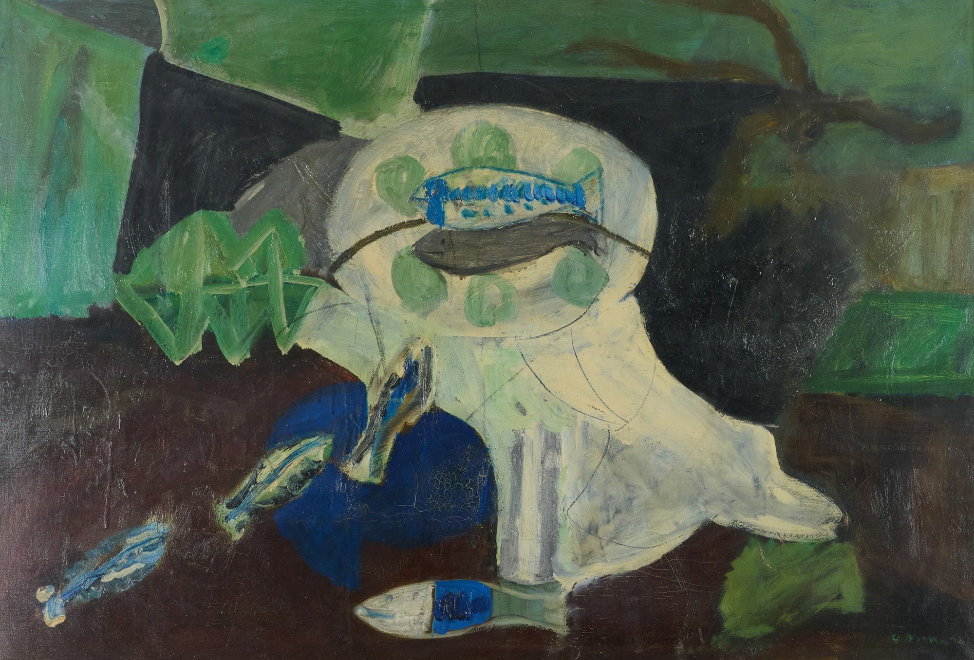 Firmato in basso a destra.Sul verso: data, titolo e scritto "Pittore Bruno Cassinari - Galleria Il Milione, Milano"Etichetta: "Mostra della Pittura Italiana Contemporanea in Germania - Studio Italiano di Scuola dell'Arte", Firenze, Palazzo Strozzi.
