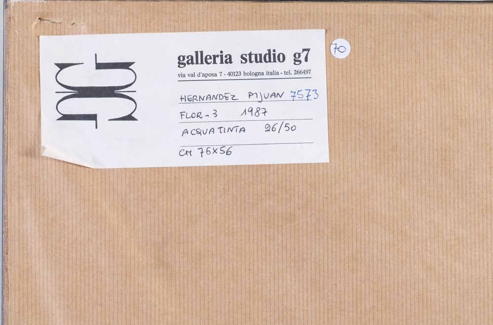 JOAN HERNANDEZ PIJUAN (Barcellona 1931 - 2005) "FLOR-4", 1987. Acquaforte e acquatinta su carta. Cm 76x56. Opera firmata e datata in basso a destra Hernandez Pijuan 87. Reca numeri di tiratura in basso a sinistra 26/50. Al retro reca etichetta Galleria Studio G7, Bologna.