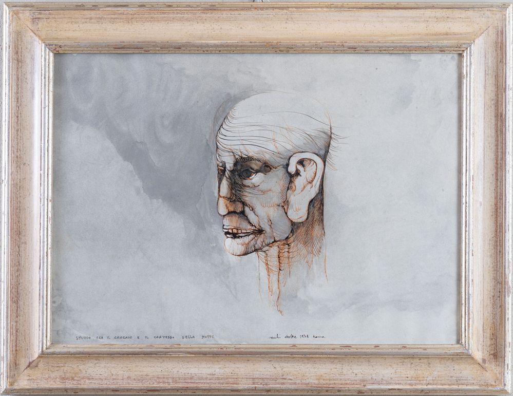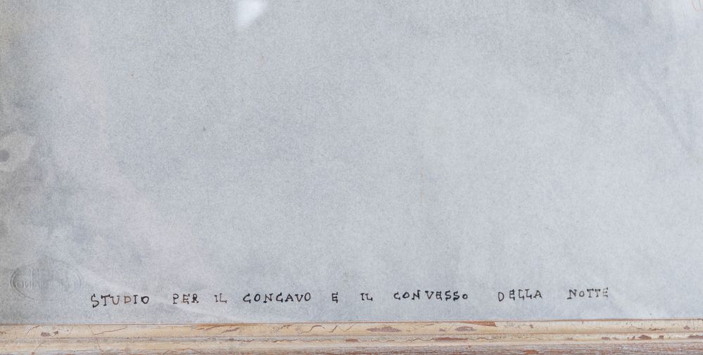 SERGIO VACCHI (Castenaso 1925 - Siena 2016) "Studio per il concavo e il convesso della notte", 1978. Tecnica mista su carta. Cm 50x70. Opera firmata e datata in basso a centro Vacchi 1978. Opera intitolata in basso a sinistra Studio per il concavo e il convesso della notte.