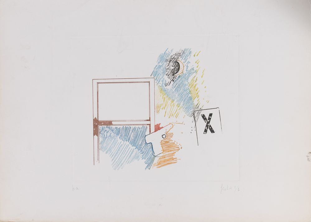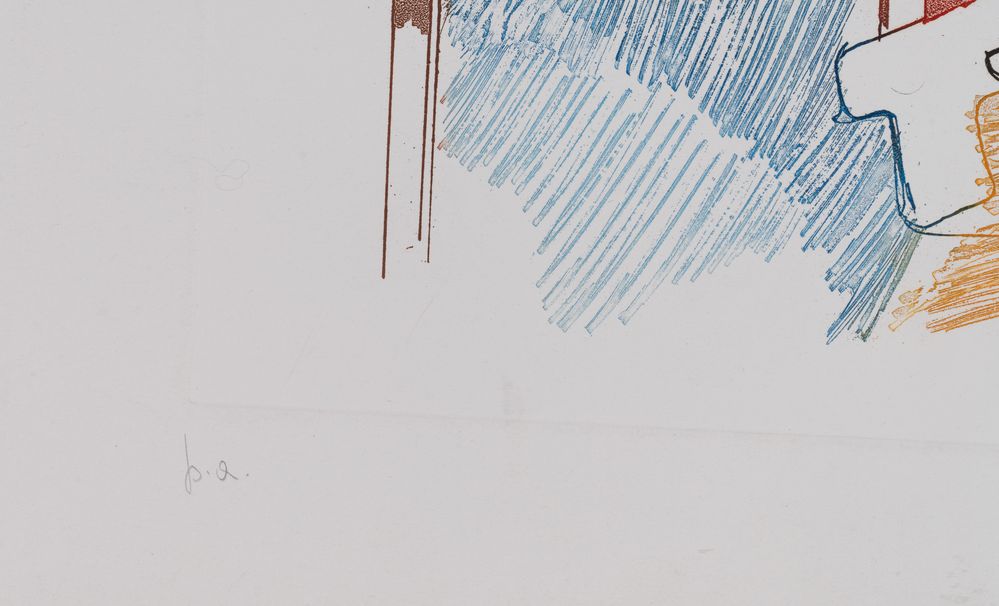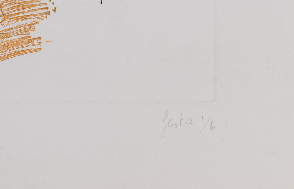 TANO FESTA (Roma 1938 - Roma 1988) "Senza titolo". Litografia a colori su carta. Foglio: cm 50x70; lastra: cm 32x37. Opera firmata in basso a destra Festa. Reca numeri di tiratura in basso a sinistra p.a. e in basso a destra 1/6.