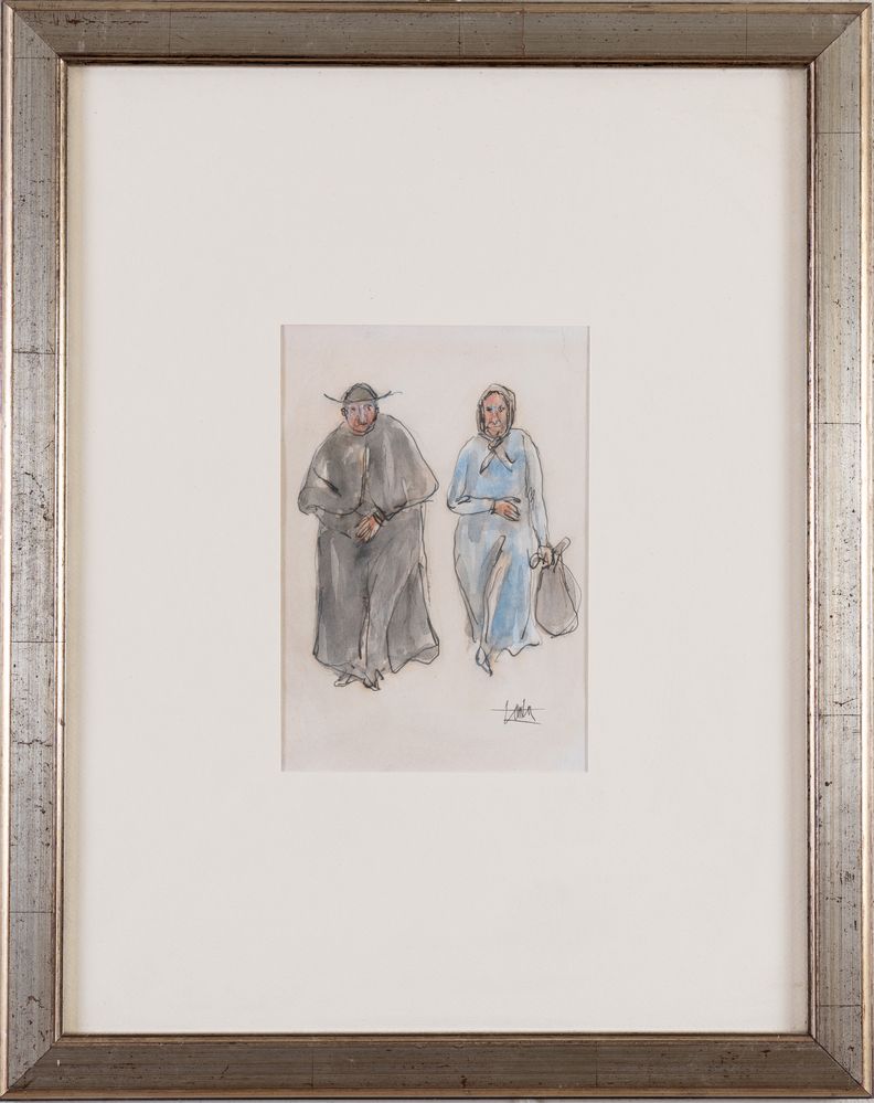 CLETO TOMBA (Castel San Pietro Terme 1898 - Bologna 1987) "Figure". Acquerello su carta. Cm 21,5x16,5. Opera firmata in basso a destra Tomba.