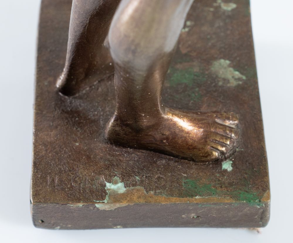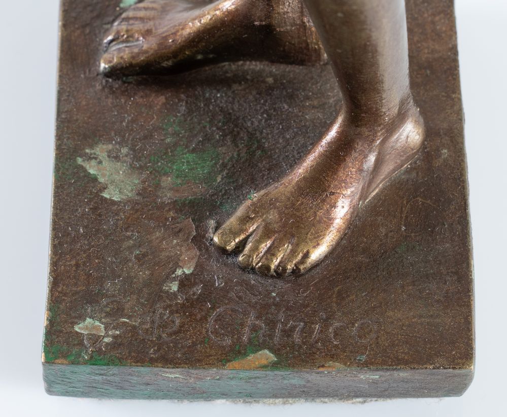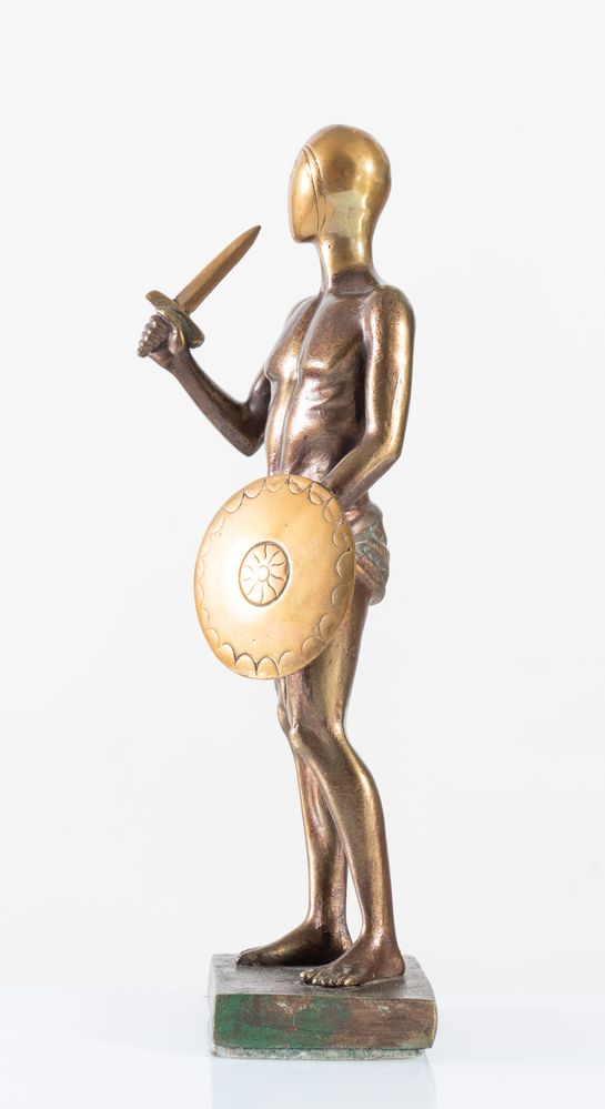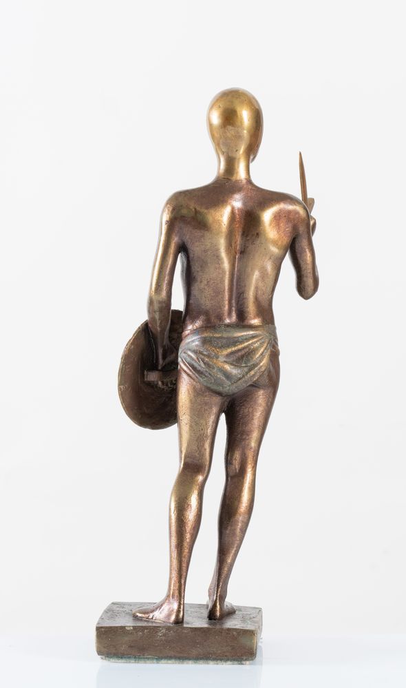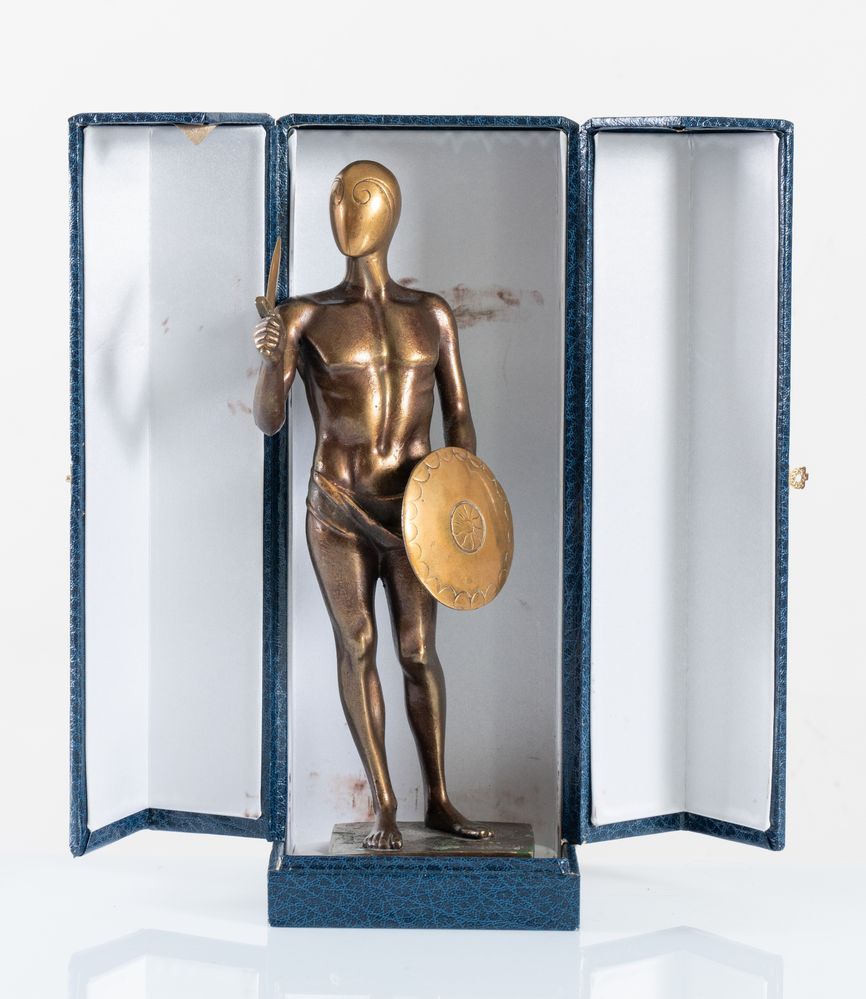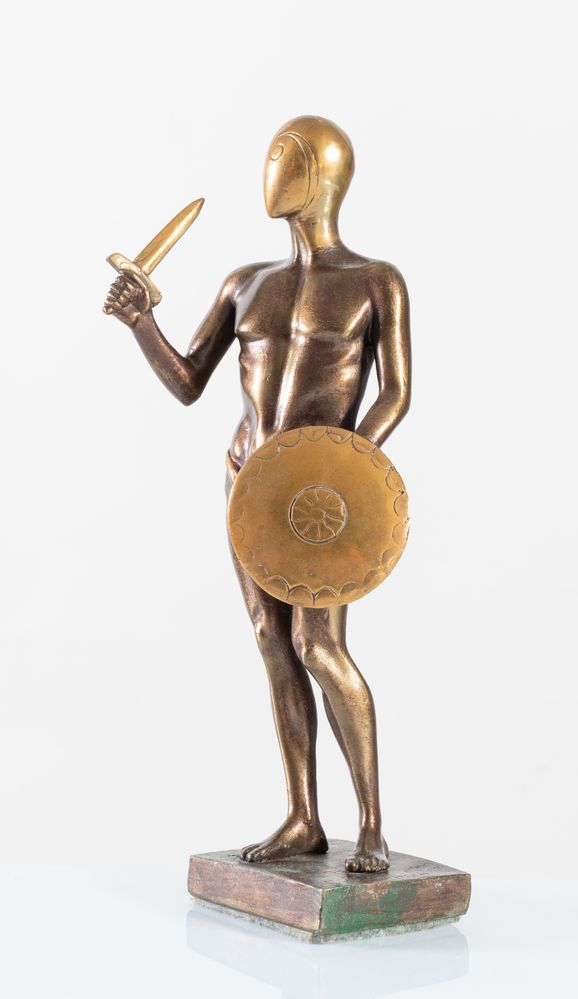 GIORGIO DE CHIRICO (Volo 1888 - Roma 1978) "Il gladiatore", 1988. Scultura in bronzo. Cm 31x10x7. Opera firmata e intitolata alla base G. De Chirico Il gladiatore. Multiplo realizzato dalla Fondazione Giorgio e Isa de Chirico, in occasione del Centenario della nascita del maestro, da una scultura in bronzo eseguita dal maestro nel 1968.